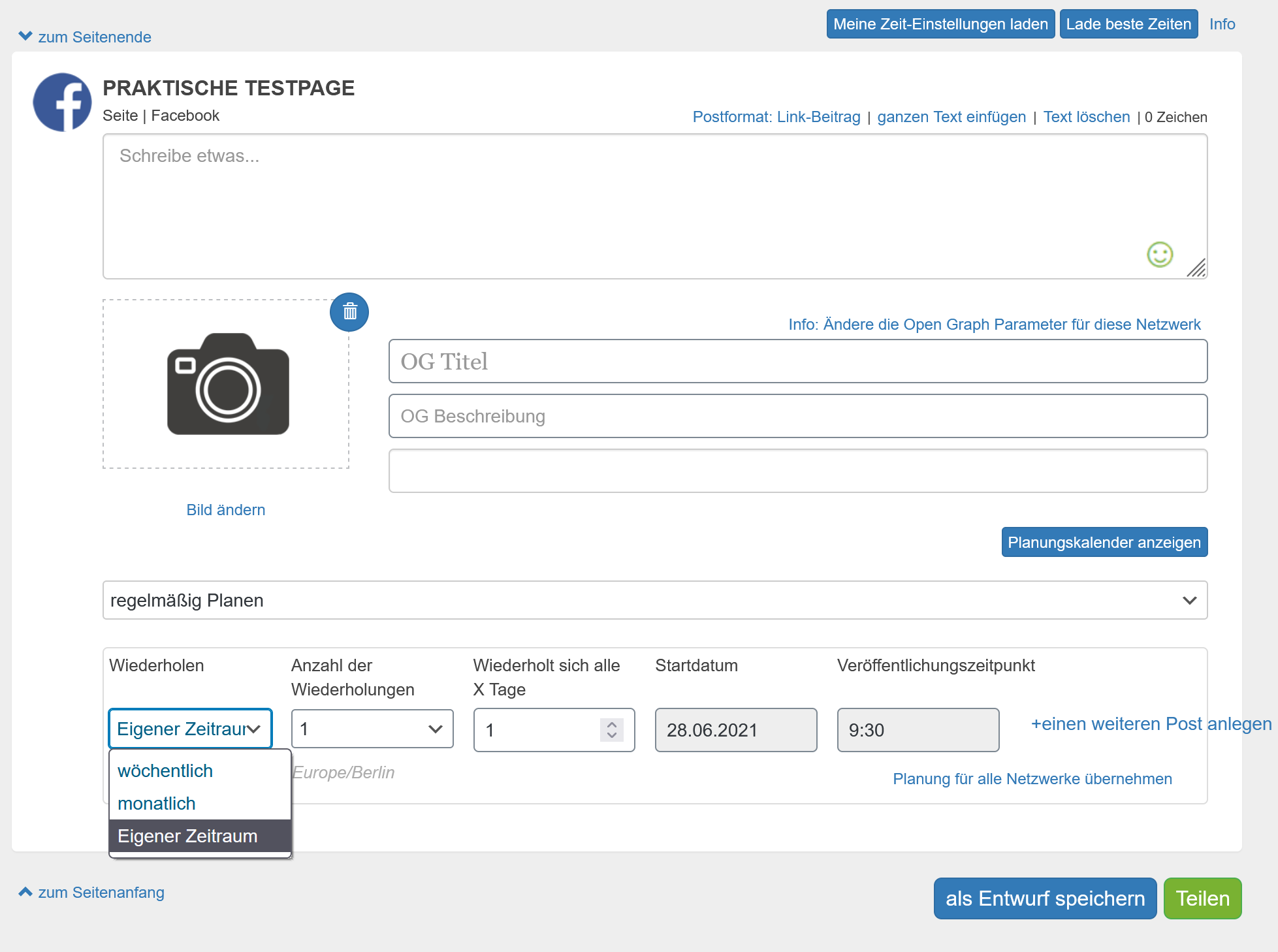 Um den Beitrag in einem wiederkehrenden Rhythmus für die Veröffentlichung in den Social Media im Voraus vorzuplanen,